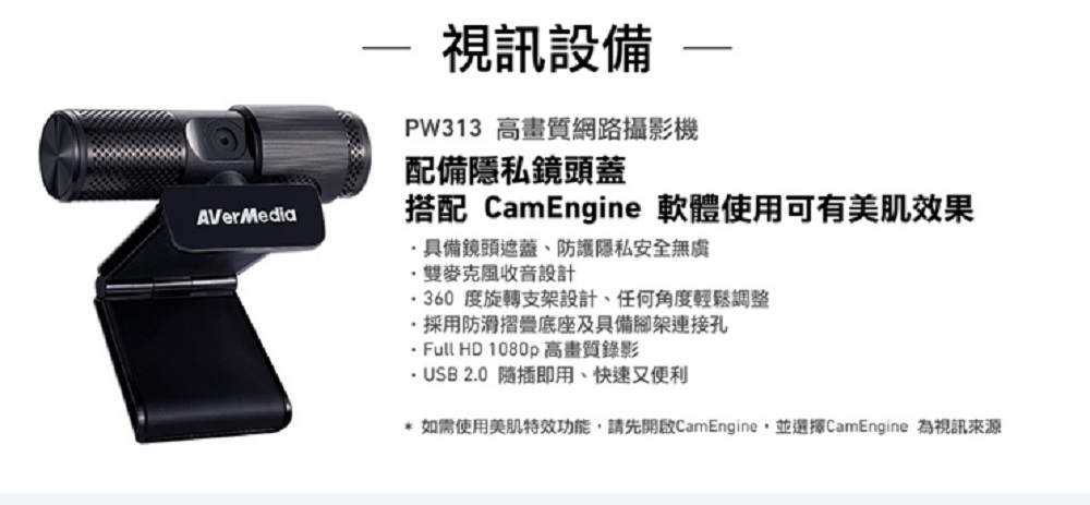 為了提供更好的視訊品質與個資防護,BO317 個人視訊協作組合使用 PW313 高畫質網路攝影機,並具備 CamEngine 軟體與鏡頭遮蓋,前者可以提供不錯的美肌效果,後者則是可以給予可靠的物理防窺效果,搭配 360 度旋轉支架一起使用,讓視訊效果更上一層樓!