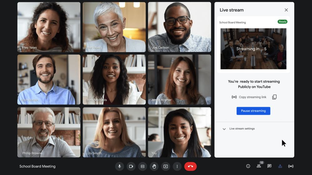 Google Meet  也預告會在 2022 年全面為教育升級版用戶開放支援 YouTube 串流直播。串流 YouTube 的功能則相當適合用在主持人、介紹者分隔兩地的談話式節目、線上課程、發表會等。