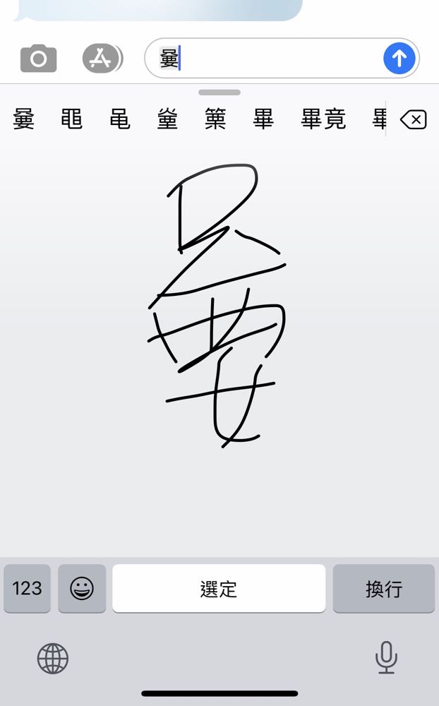 3) 當上方輸入欄位中出現剛剛寫進去的字後,再按地球來把輸入法從手寫切換到「注音」。