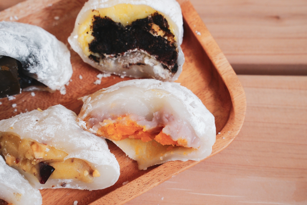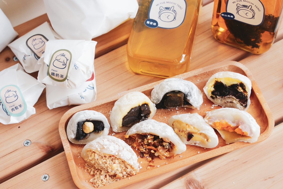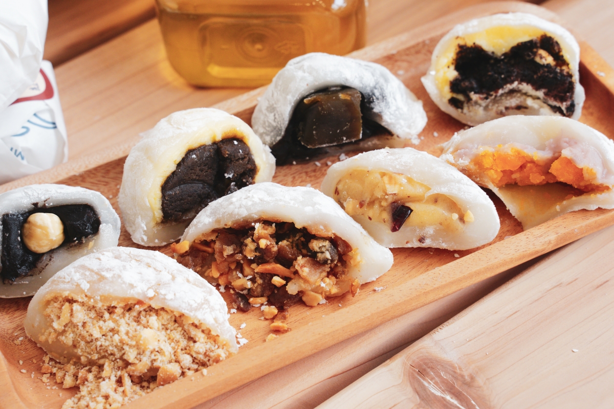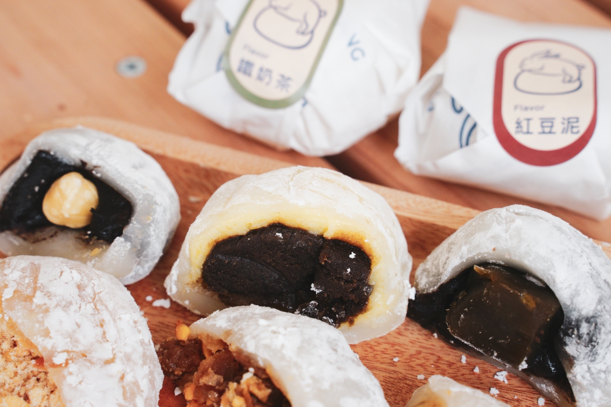 提供口味多樣,每日固定五種口味:王牌奶茶鐵觀音、楓糖小堅梅、花生粒粒經典、芋頭鹹蛋黃超人、茶香紅豆泥,其他還有六種特別的口味,分別在每月單數日提供:提拉米蘇、生巧克力榛果、老派脯花生菜,每月雙數日提供:捲捲肉鬆芋泥、初春鳳梨紅、草莓起司蛋糕。價格都是實惠的銅板價,讓我們輕鬆無負擔就能吃到療癒麻糬!