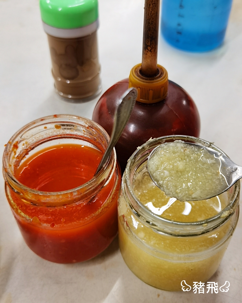 臭豆腐必加的醬料三寶:蒜蓉醬、辣醬、烏醋,一個都不能少,在臭豆腐上方的凹洞以自己喜歡的比例加入醬料就對了!
