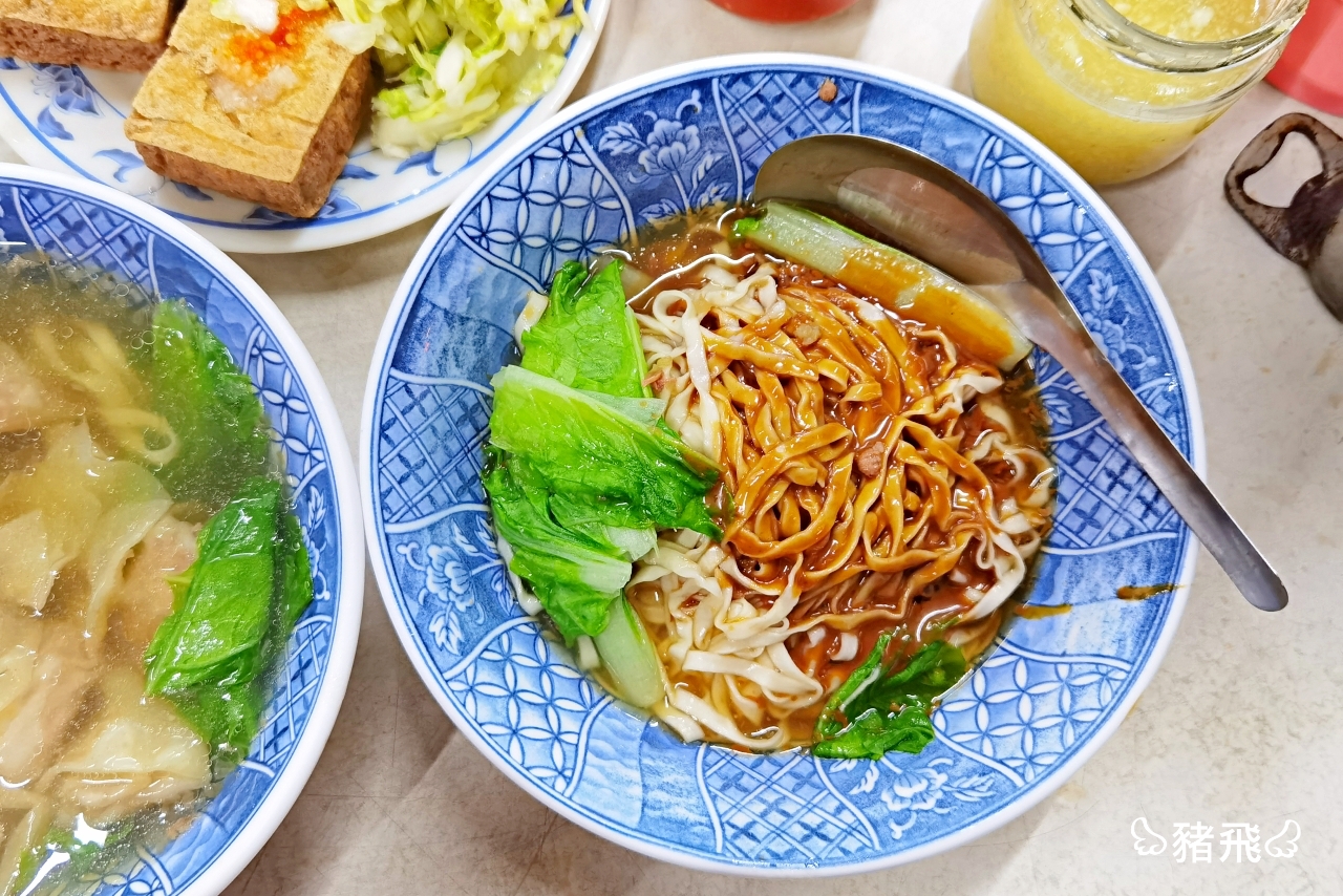 記憶中的味道就是這一味「合作新村臭豆腐」!豬飛吃它已經超過20年了!外酥脆內軟嫩的臭豆腐加上自製台式泡菜再搭配蒜蓉醬、辣椒醬、烏醋,每一口都讓人欲罷不能,難怪每天晚餐時間這裡都在排隊,臭豆腐+麻醬麵+餛飩湯是這裡必吃三寶。