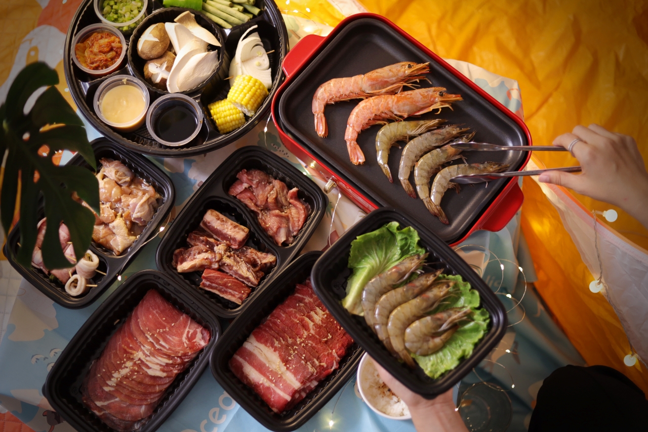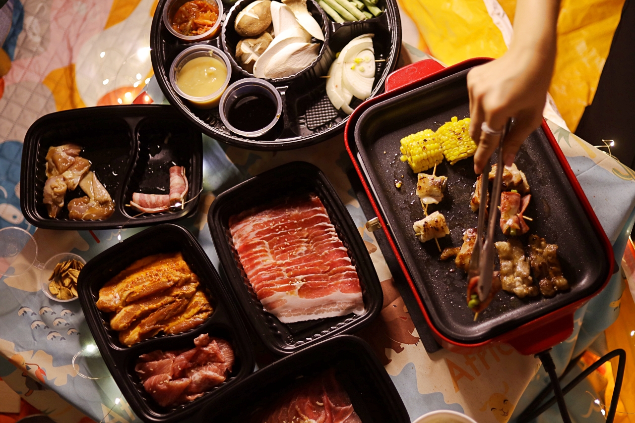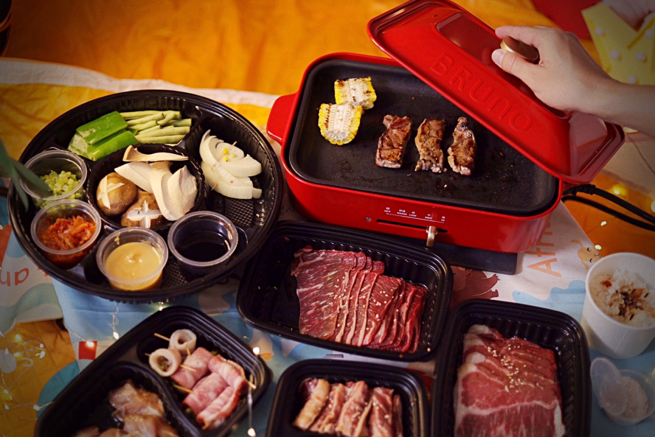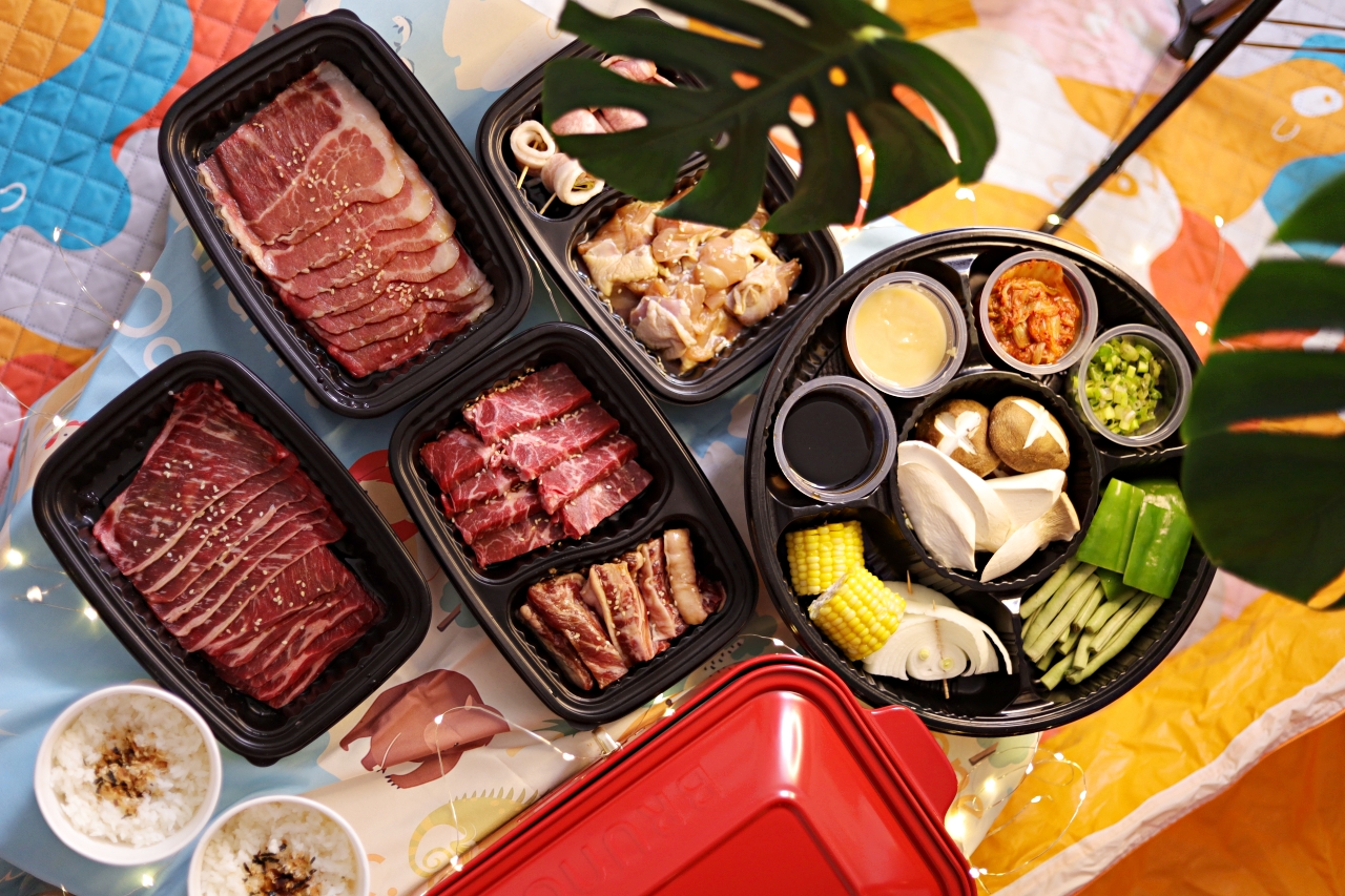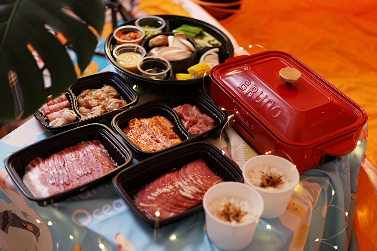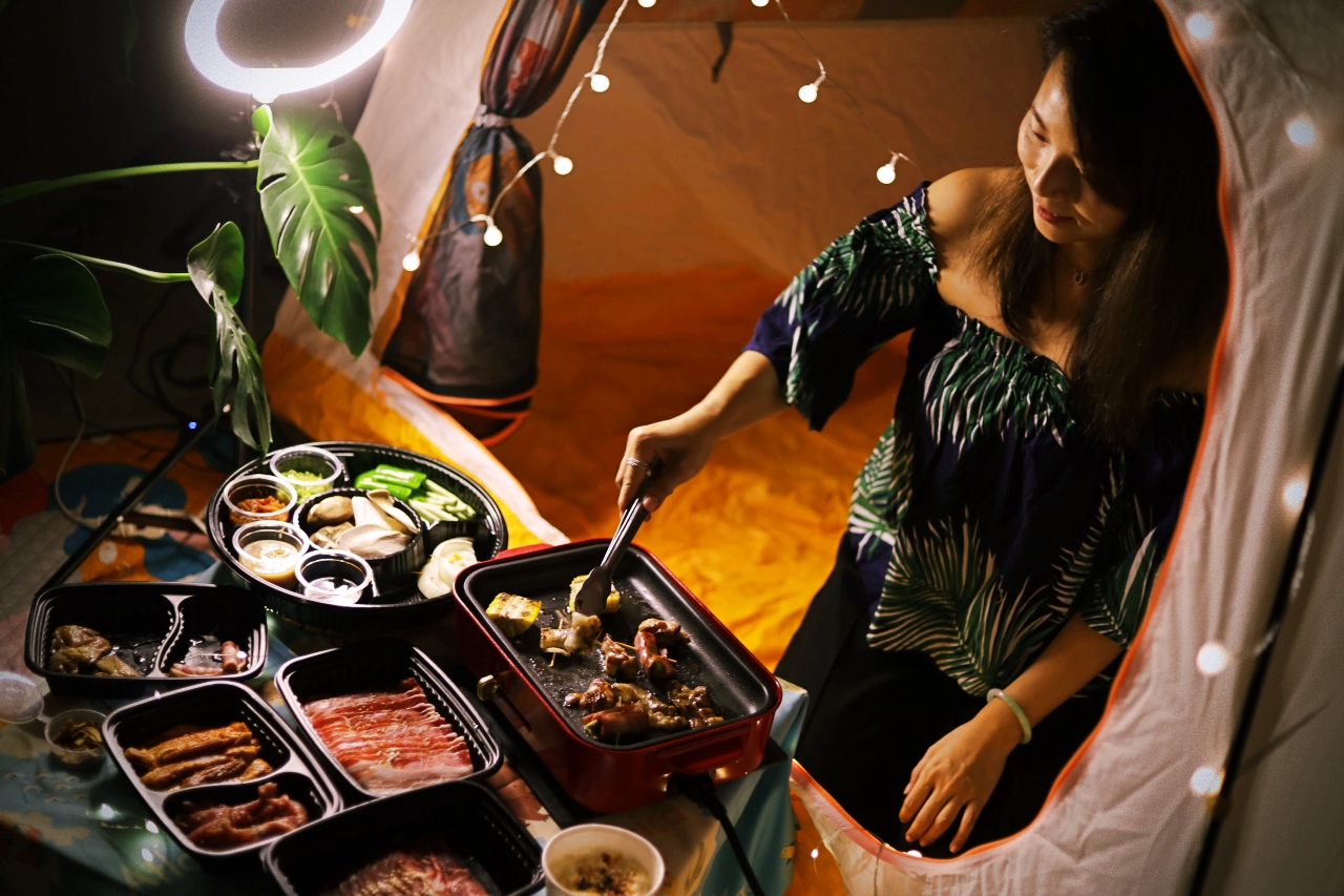 WFH久了,開始講究生活美學(其實是悶壞了),我們把帳篷、野餐墊放到客廳一角,掛上夢幻小燈條,稍微佈置一下像是在戶外野餐,然後訂了住家附近的Oh ! Yaki 日式精緻炭火燒肉外送套組,超狂的是連烤盤都有(天啊!是我好想要的BRUNO電烤盤),搭配店內超人氣肉品,準備好度假心情,享受夢幻的一餐。