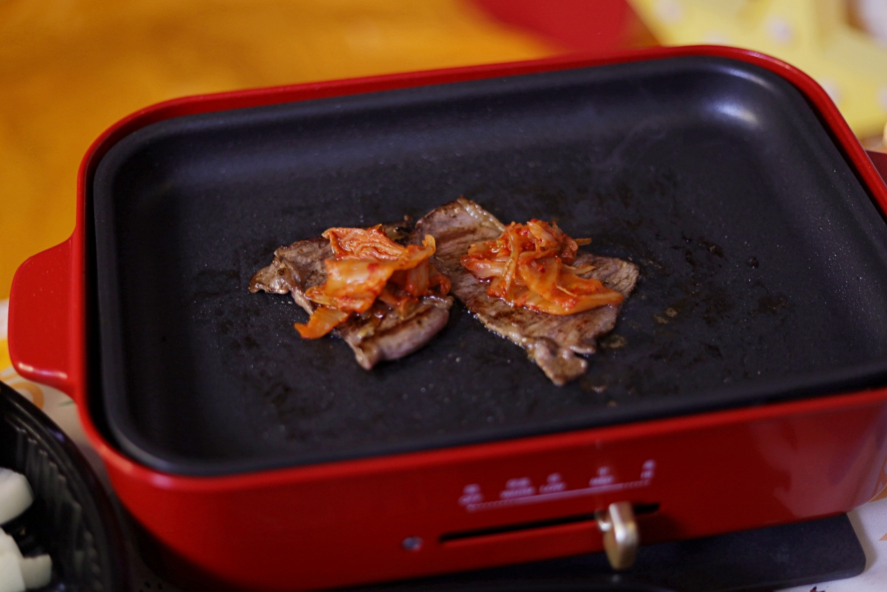 很喜歡肉片搭配泡菜的吃法,泡菜口感比較酸,微微的辣度,讓整體吃起來層次更豐富。