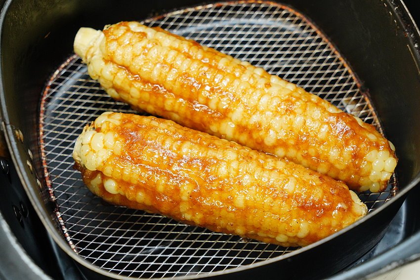 3.將煮好的醬料均勻塗抹在玉米上頭,再放入氣炸鍋,設定180度5分鐘。