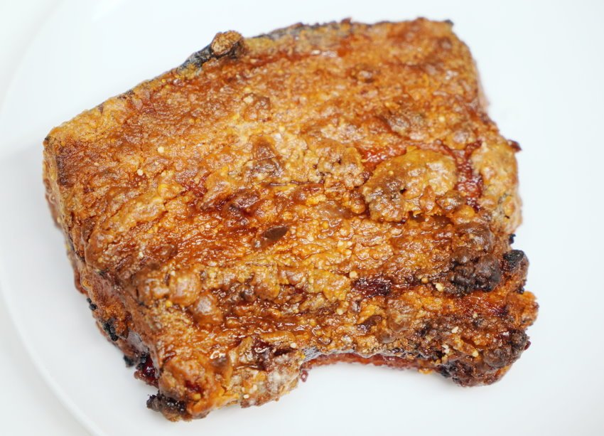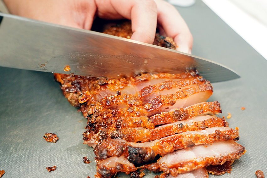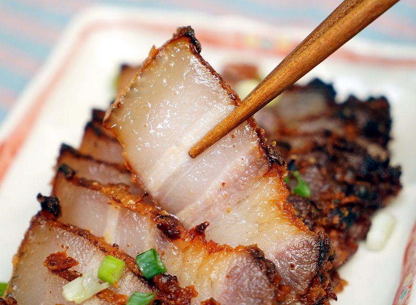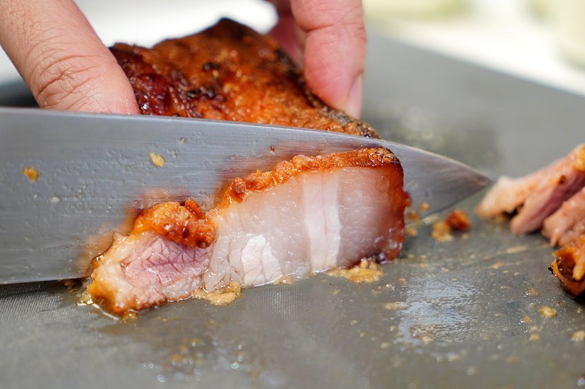 ▼紅糟肉帶點微酥的感覺,光看就很邪惡啊~~等到稍微冷卻一點就可以來切片啦!