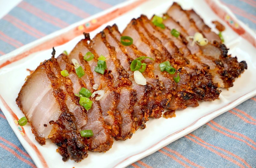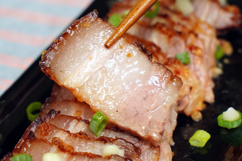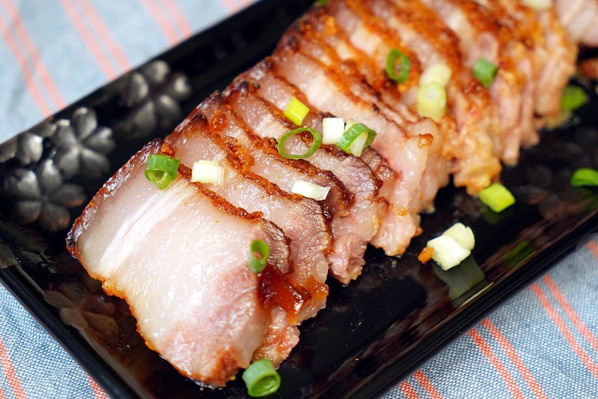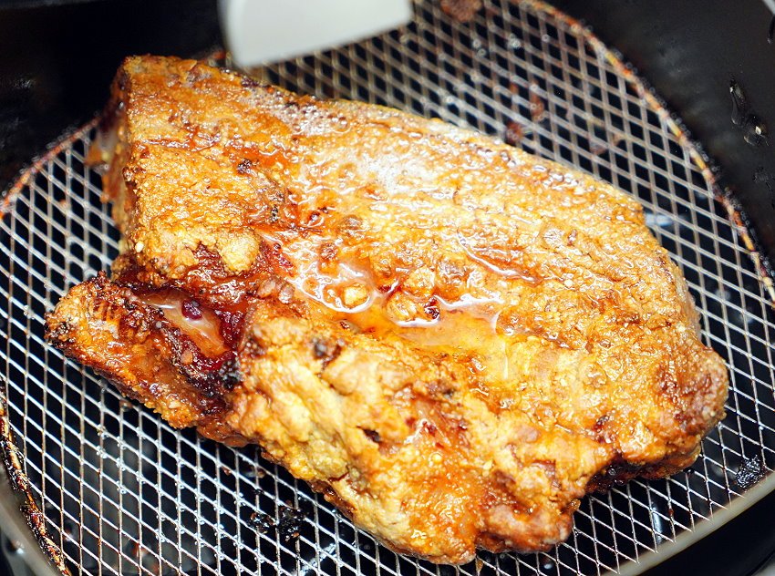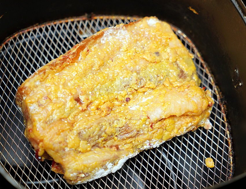 4.將五花肉正反面均勻刷上油,即可放入氣炸鍋,設定180度10~12分鐘。