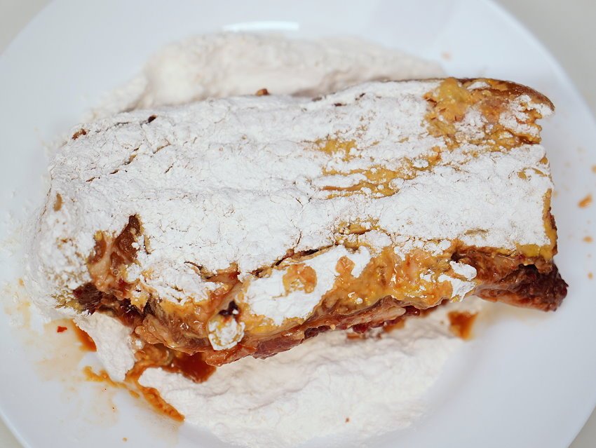 ▼切片囉~~刀子一下去就會聽到卡滋卡滋的聲音,外酥內彈很可以啊!