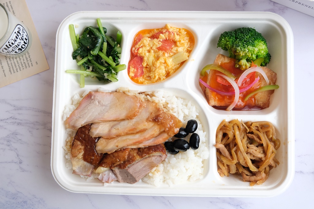 這是我最期待的一款,因為之前吃過醉月樓的烤鴨覺得很好吃,讓我期待值很高!可惜外帶便當的鴨肉份量吃不過癮,不過有雙主菜所以整體份量十足,可以吃很飽~