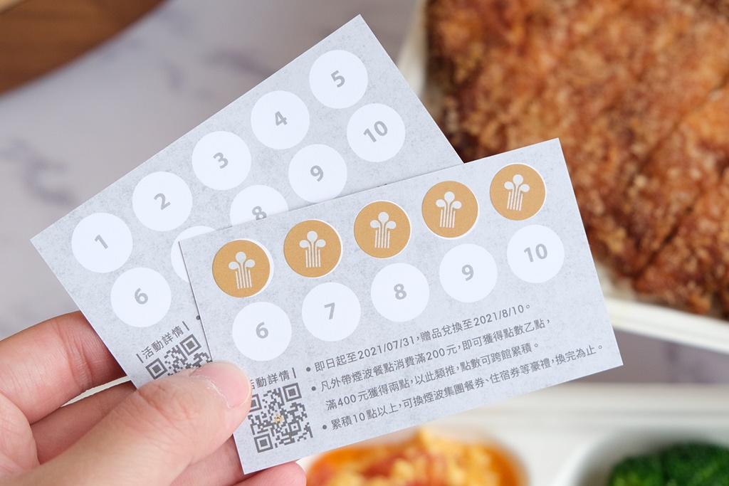 即日起至7/31,凡外帶煙波餐點消費滿200元即可獲得點數乙點、滿400元可獲兩點,以此類推…