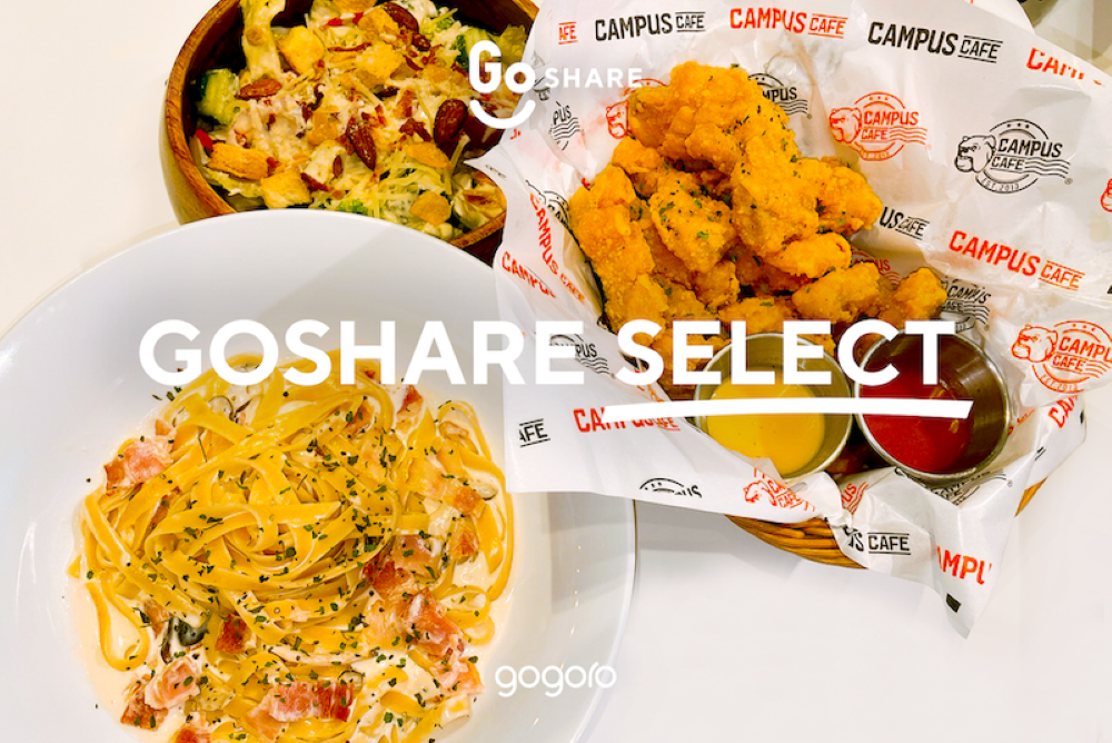 - 7/1 至 7/29,GoShare 聯手 Campus Cafe、雙月食品社、富錦樹台菜香檳、一號島廚房,嚴選多種風格各異的鎮店料理,每週送上 20 份超飽足「GoShare Select 撫胃套餐」。