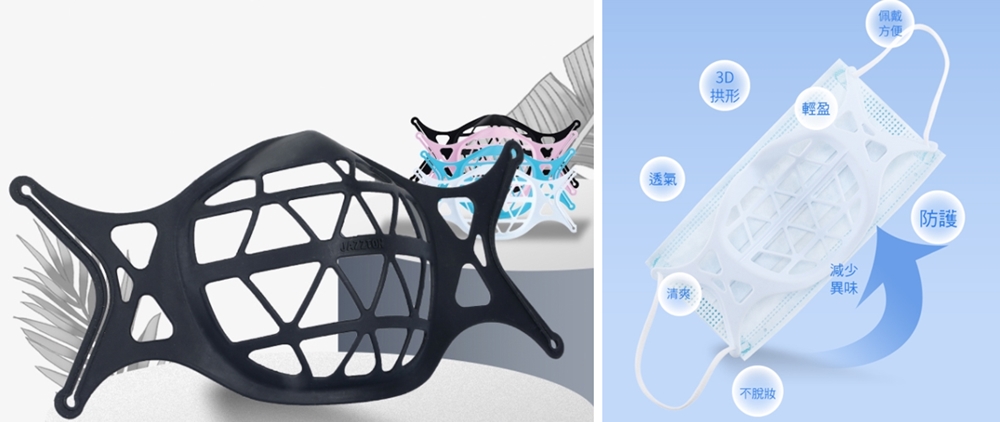 長時間配戴口罩下來,你也有呼吸不順暢、眼鏡總是起霧、化妝品黏住口罩,或是臉部產生「口罩痘」的情況嗎?這款口罩支架採用 3D 立體的設計,將之套在一次性醫療口罩的內部,配戴後就能產生一個呼吸空間,幫助防悶透氣。材質選用食品級的矽膠,柔軟之外還可以水煮殺菌,並有四種顏色可以挑選,減輕配戴口罩的負擔。