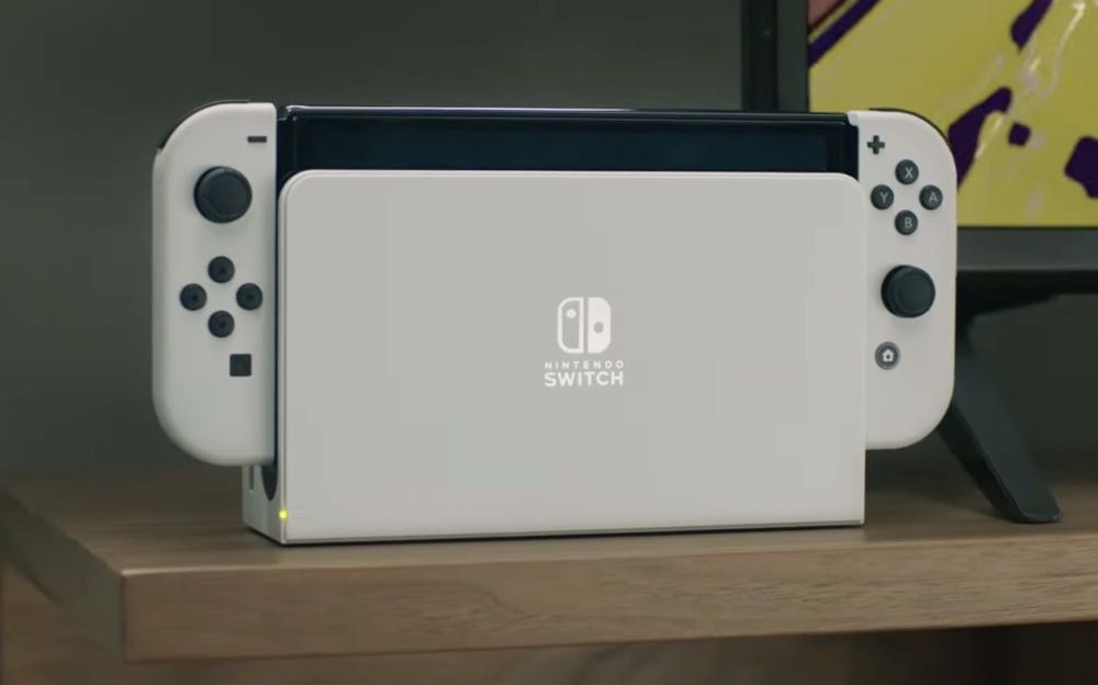 主機有「白色」和「電光藍・電光紅」兩色可以選擇,原本的 Joy-Con 控制器以及底座都與既有型號相容,可彼此通用,預計 10 月 8 日上市,售價為 NT$10,480 元。