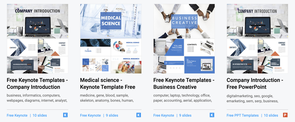 Slide Members 同樣有提供免費簡報模版可以下載,而且除了常見的 Powerpoint 模板之外,也有 Keynote 模板,很適合 mac 系統的使用者。