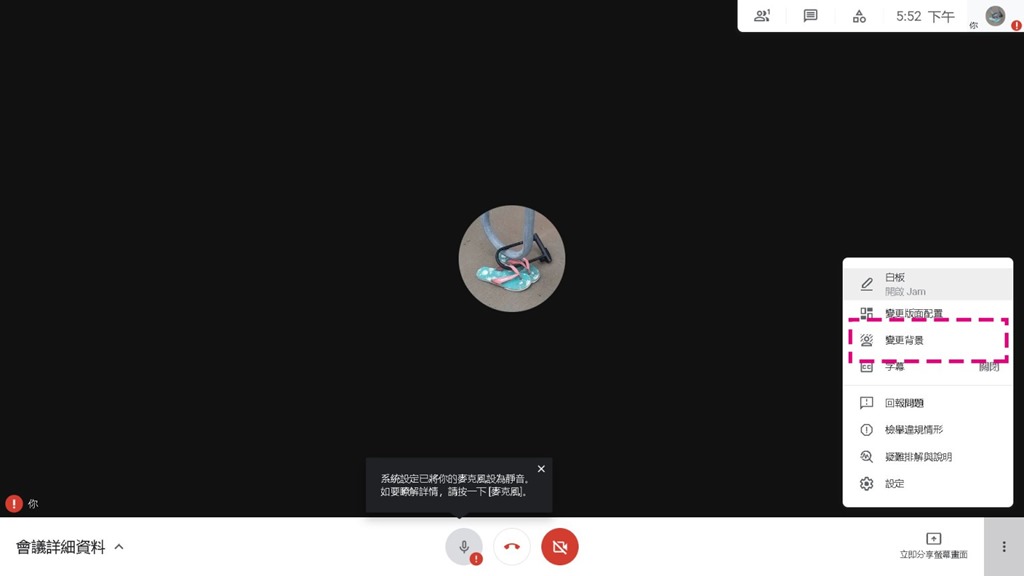 視訊時,不論是使用 Google Meet、Microsoft Teams 等視訊工具,都內建背景虛化或是更換自訂背景的功能,推薦可以考慮做一張屬於自己隊伍的背景,這樣在簡報時可以讓評審知道自己來自哪個隊伍,也可以避免雜亂的背景入鏡。
