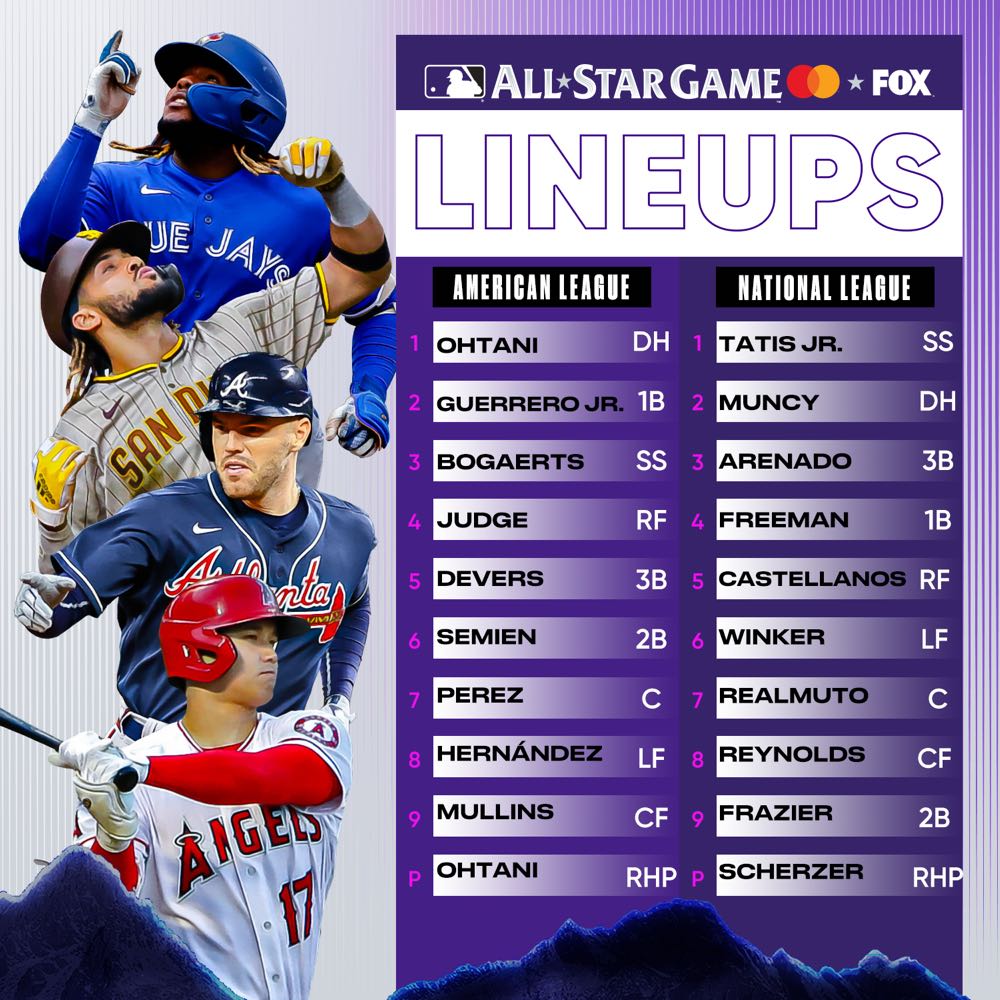 2021 美國職棒大聯盟全明星賽是由球迷投票選出的 8 名先發球員以及 1 名指定打擊,共 9 位出賽,分為美國聯盟與國家聯盟兩隊,近日相當受到歡迎,目前效力於洛杉磯天使隊日本籍球員大谷翔平(Shohei Ohtani)也將代表美國聯盟以指定打擊與先發投手的身份出賽!