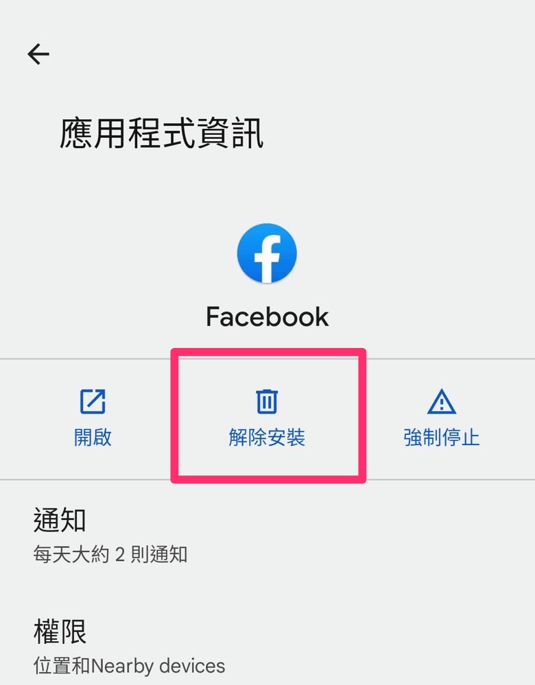 在設定裡的應用程式中可以看到自己一直卡頓想要刪掉的那個 app,點選該 app 就會有「解除安裝」的選擇,這時就可以在這邊把應用程式刪除囉!