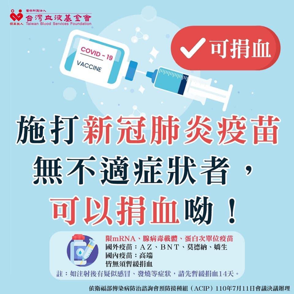 在預約前,大家也可以先確認自己近期健康狀況,打完疫苗若是沒有不適症狀的朋友也能進行捐血。