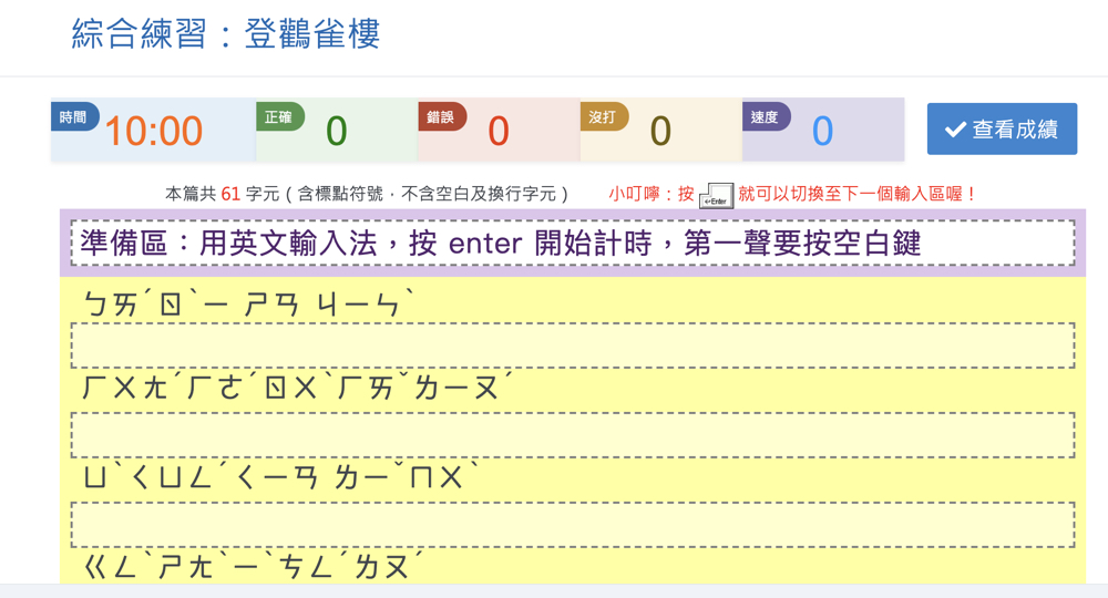 不管是想要練習自己的中文、英文打字速度,還是家裡小孩們練習注音拼音的朋友,《花蓮縣打字練習網》是個不錯的練習好平台唷!