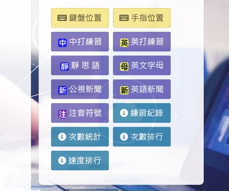 除了練習中文打字,還可以練習英文打字、注音符號,或是《花蓮縣打字練習網》還收錄了內容較為優質的公視新聞當作練習範本。
