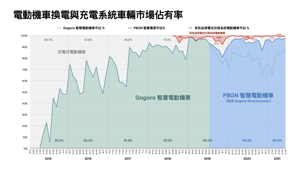 7 月 27 日,Gogoro Network 宣布正式突破 40 萬名用戶數,超越 2 億顆的電池交換,全體騎士二氧化累積減少總量達 3 億公斤。根據官方統計,2020 年有 94.5% 的電動機車消費者選擇 Powered By Gogoro Network 聯盟車款,該比例於 2021 年上半年更上升至史上最高的 96.8%。