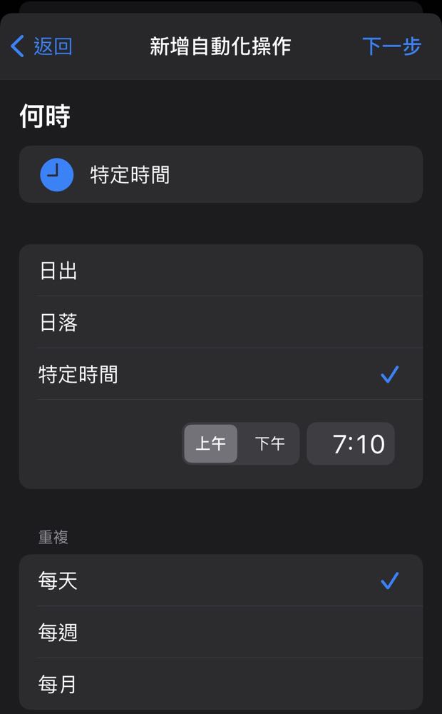 3) 這邊選擇「特定時間」後再設定「特定時間」的時間