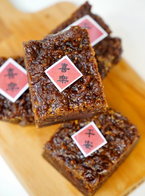 ▼將冬瓜茶磚稍微包裝、擺上小春聯裝飾,就可以當作禮物送給親朋好友啦! (冬瓜茶磚要使用的時候,只要放入與茶磚1:1或1:2的滾水中先煮成糖蜜,要喝的時候再稀釋成4~5倍的水即可)