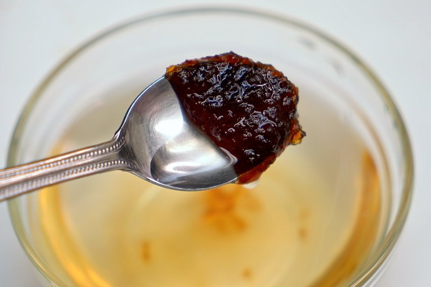 ▼大家可以裝一小杯水,用湯匙挖一匙糖蜜放進水中來測試看看,如果從水中拿起來糖蜜有成塊且是硬梆梆的那就代表差不多囉!