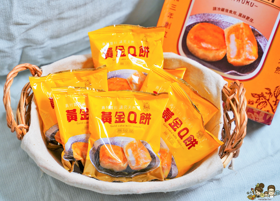 包裝顏色很喜氣也討喜的黃金Q餅,中秋送禮、過年送禮都相當不錯(金黃色澤猶如黃金般光芒)