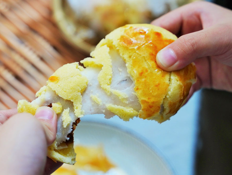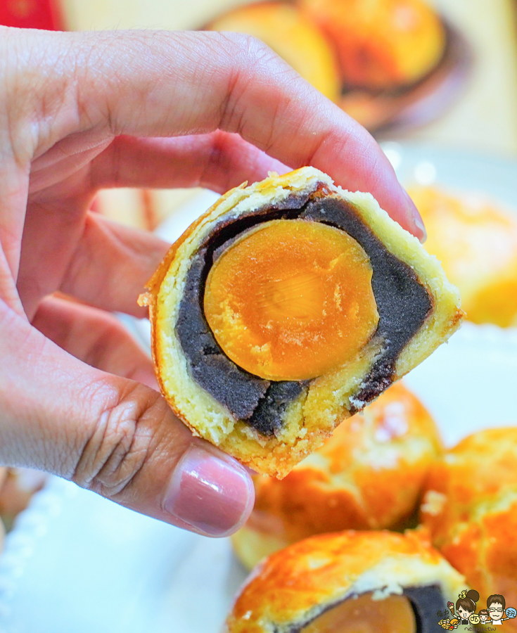 大顆飽滿的鹹蛋黃點綴整個糕點風味,鹹香甜一吃停不了嘴