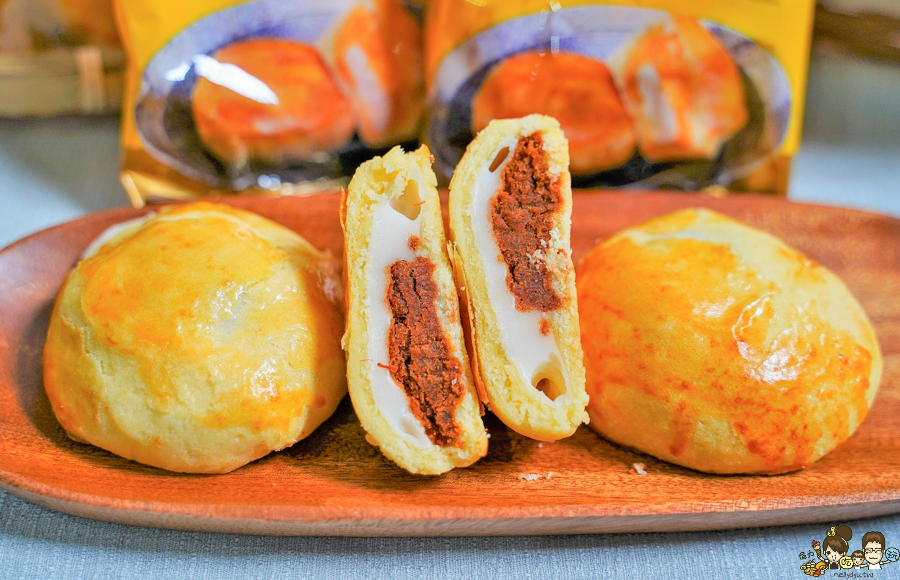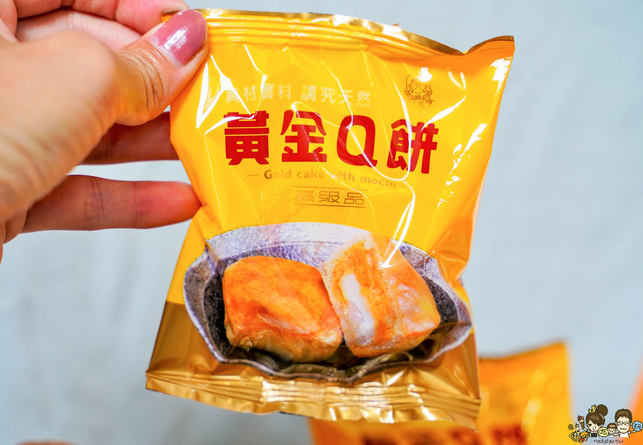 時下最夯裡面夾有軟Q特製的麻糬,帶創意口層次口感、讓傳統糕點多了驚喜風味的 黃金Q餅、肉鬆Q餅
