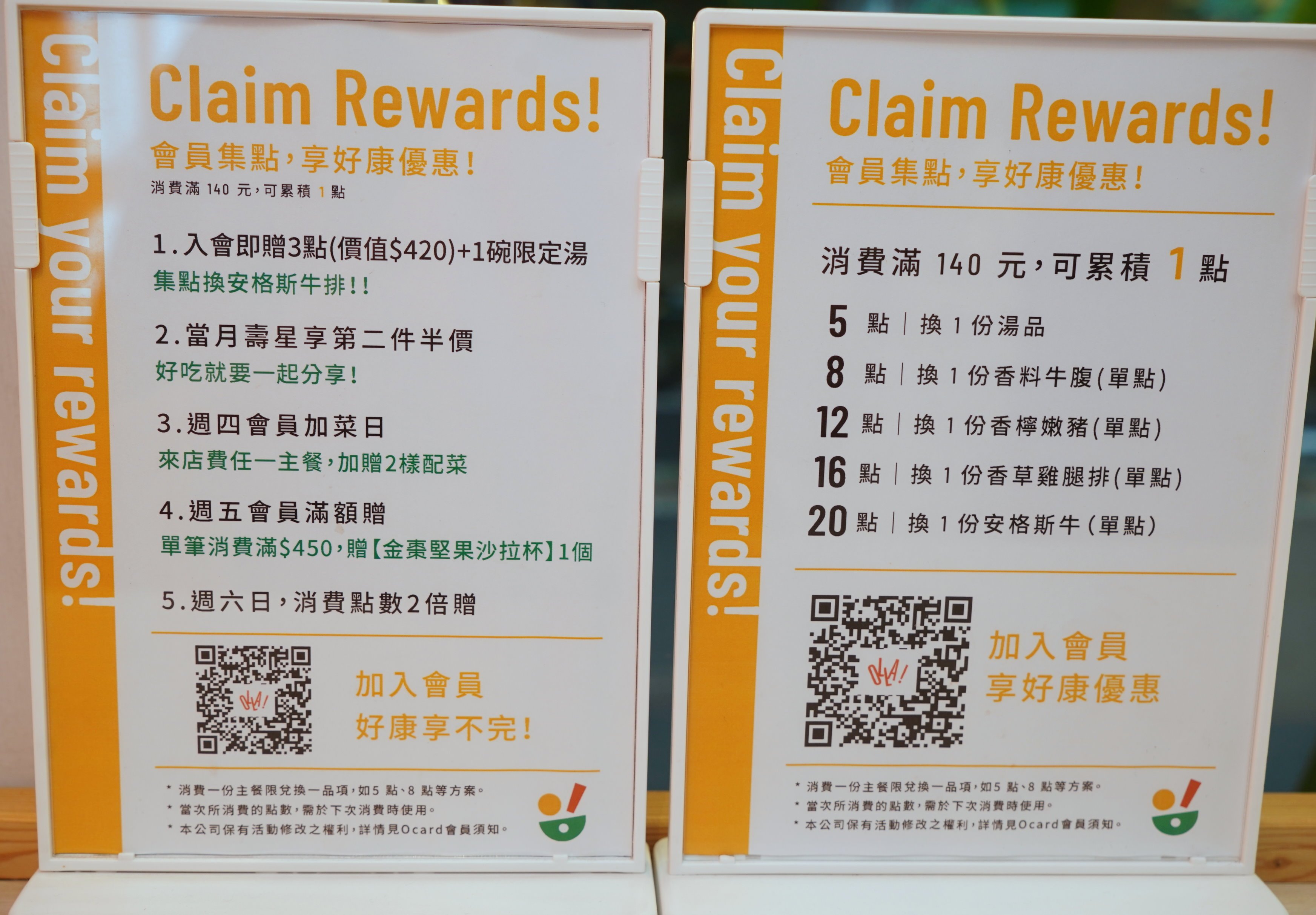 ▼這裡的用餐方式也很簡單,先選擇主菜,再選擇三樣配菜,最後選醬料即可!喜愛的朋友也可以加入會員,每週四只要消費任一主餐,就加送兩種配菜,真的很划算呢~~