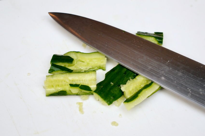 ▼小黃瓜切段後用刀背拍裂,更容易入味!