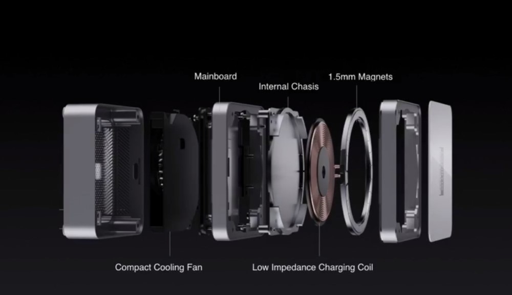 realme 解釋,MagDart 長時間維持高功率充電的秘密,在於內部的主動式風冷散熱系統,內置的小型風扇將大量空氣引進充電器,同時將充電產生的熱能帶走,好讓主機板譽線圈溫度維持在正常水準。經官方實測,其充電效率可達蘋果 MagSafe 的 8 倍。
