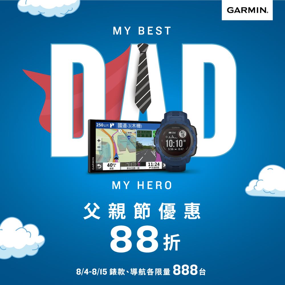 微解封自駕旅遊成趨勢,為提供消費者最安心、安全的旅程,Garmin 精選「DriveSmart 65 車用衛星導航」以自動語音聲控、獨家駕駛警示系統強化出遊行車安全,透過雙衛星精準定位、複雜路口 3D 實景與立體建築物地標等安心功能,支援全家探索各地秘境不迷航,全台優惠 88 折限量 888 台 (原價 NT$8,990 元/父親節優惠價 NT$7,910 元)。