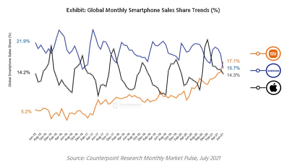 (全球智慧型手機市佔走勢/圖表來源:Counterpoint