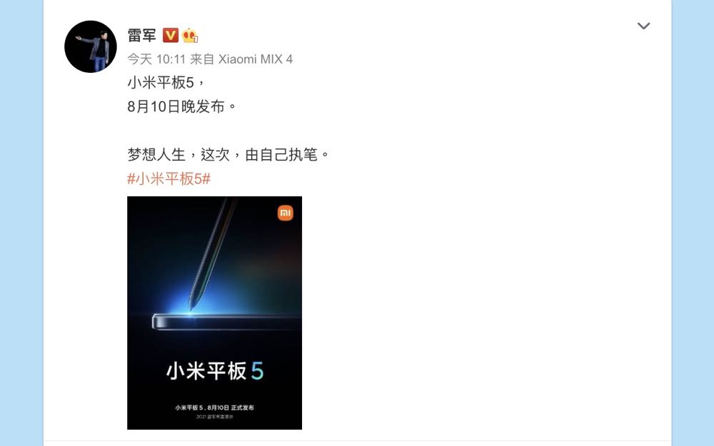 現在雷軍先生直接在微博上確認了 8 月 10 日當天會帶來 MIX 4 與小米平板 5 系列新品,距離發表會當天還有幾天的時間,那麼這段時間究竟還會有什麼樣的驚喜,會不會真的來個每日一透,也意外成為了米粉們關心的焦點呢!