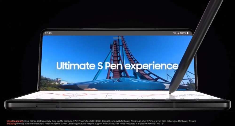 其次是 Galaxy Z Fold 3 支援 S Pen 功能。這是三星第 2 次讓非 Note 系列獲得觸控筆功能,上一次為今年初發表的 Galaxy S 21 Ultra。值得注意的是,畫面底部毫不起眼的提示寫道:
