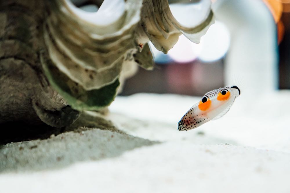 而「璀璨新生」的各種珊瑚礁幼魚展示,更讓民眾直呼可愛;包含身上有著許多黑橘圓點彷彿海中波點藝術家的紅喉盔魚、猶如陣陣湛藍水波的條紋蓋刺魚、以及館內自行復育的超迷你小丑魚等六種幼魚。最特別的是,這些幼魚在長大之後會因應環境變化而成為完全不同樣貌甚至性別的生態,更讓參訪民眾嘖嘖稱奇。