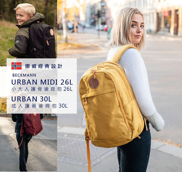 Beckmann 小大人護脊後背包的規格與顏色都有眾多選擇,從小學生 (125公分以上) 適用的 26L 至成人適用的 30-34L 都有,內有多層收納與側口袋,保護層也能放下平板或筆電,能因應不同的成長階段需求。