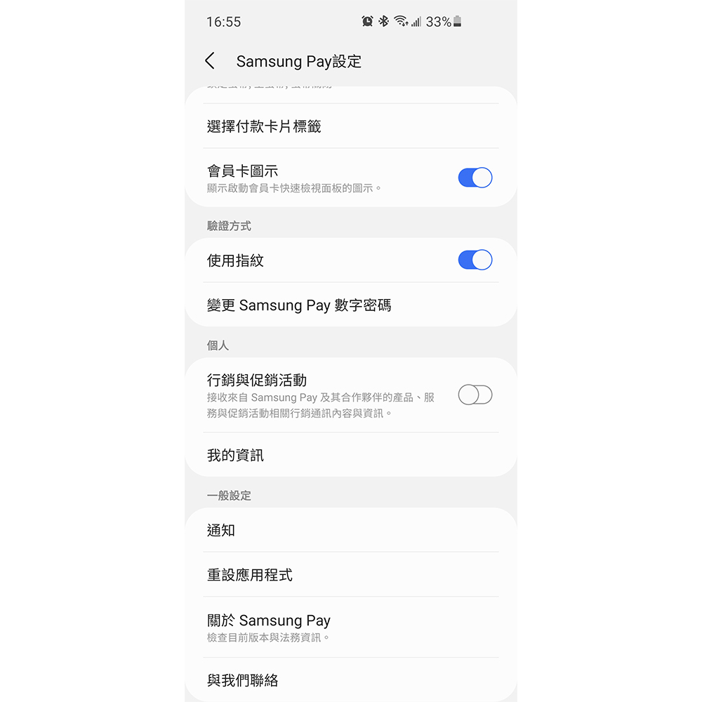 關閉廣告橫幅通知,以 Samsung Pay 舉例: