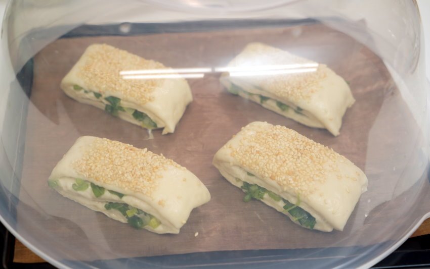 ▼第二種做法是用煎的,記得一樣先蓋上蓋子發酵30分鐘後才開始煎喔! 這個做法雖然比較麻煩(因為要顧火跟翻面)也比較油膩,但香氣更濃烈,吃起來更美味!