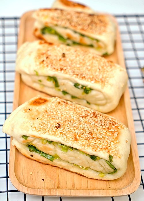沒想到自己在家也能做出如此美味的蔥燒餅、大陸餅,吃起來外酥內彈又帶有濃郁的蔥香,整個很涮嘴~~忍不住會一口接一口不誇張!我們個人是比較偏好用煎的版本,因為夠香、夠邪惡,雖然比較油膩但偶爾吃吃還可以,大家在家不妨也可以試試看唷!