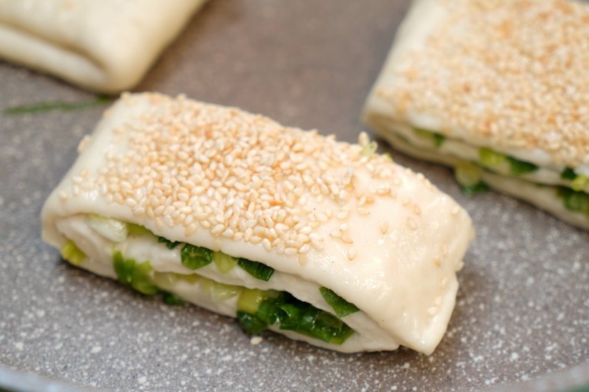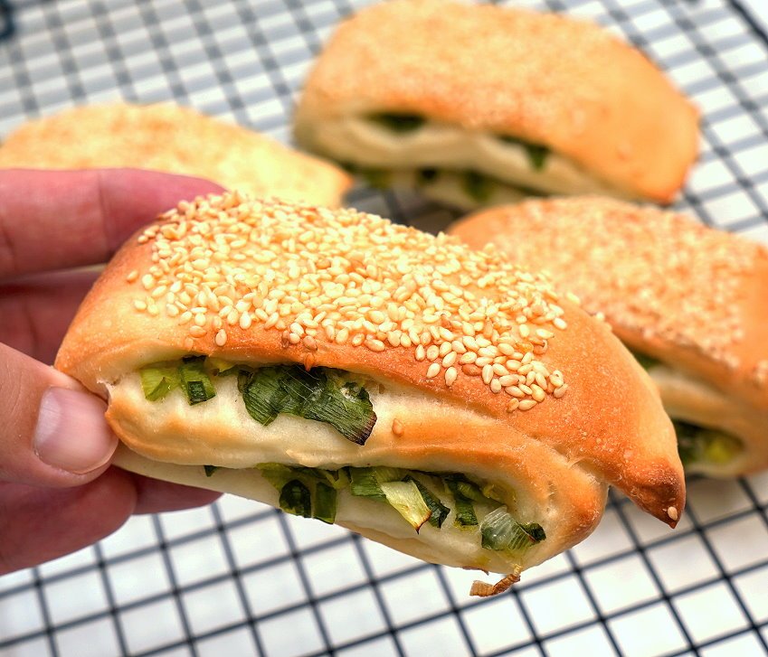 ▼外酥內彈的麵皮還帶有微甜的味蕾,搭配白芝麻香氣更足~~一口咬下既能吃到鹹香的蔥餡,還帶有微微湯汁,搭配起來清爽又好吃,一點也不油膩!