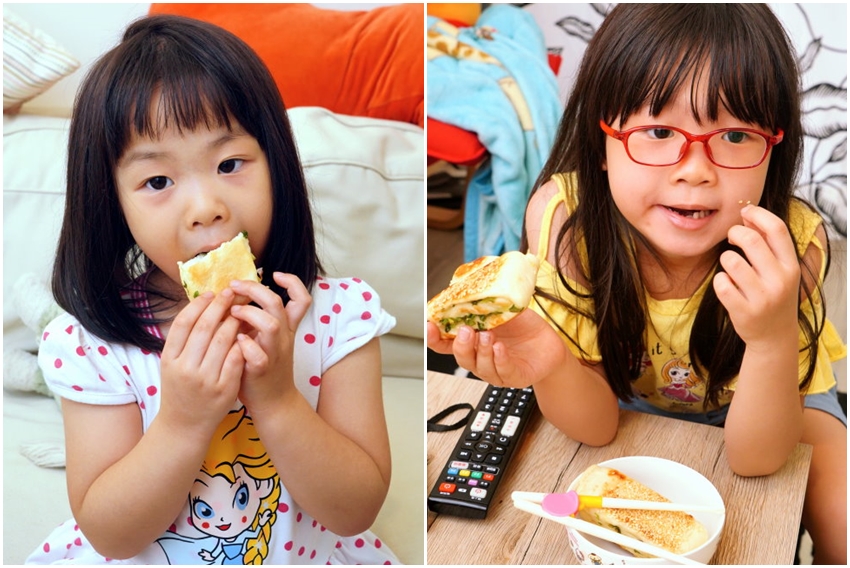 ▼蔥燒餅瞬間變成小倆口的下午茶~~看來她們也很喜歡啊!