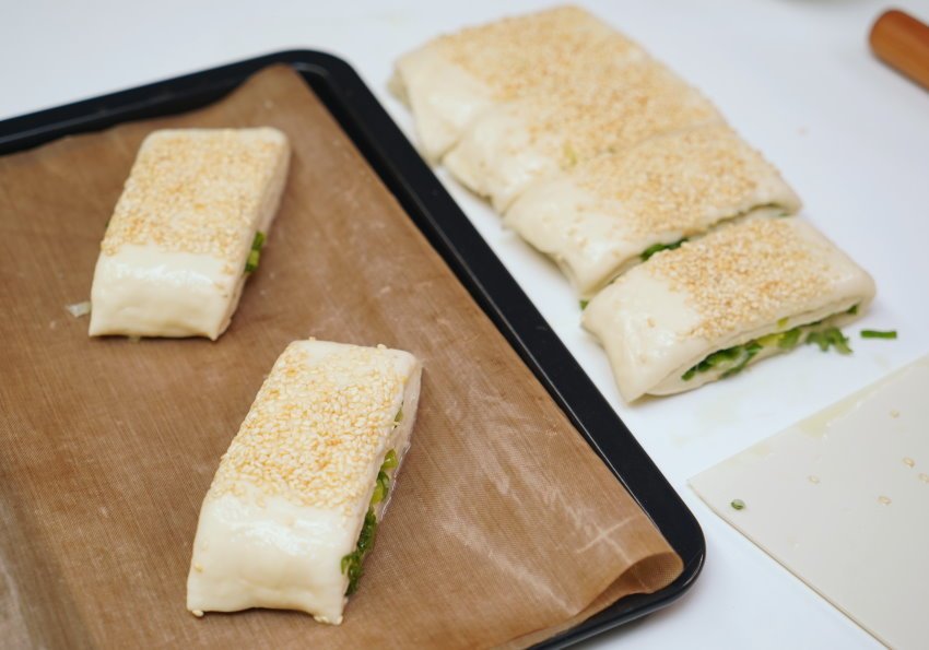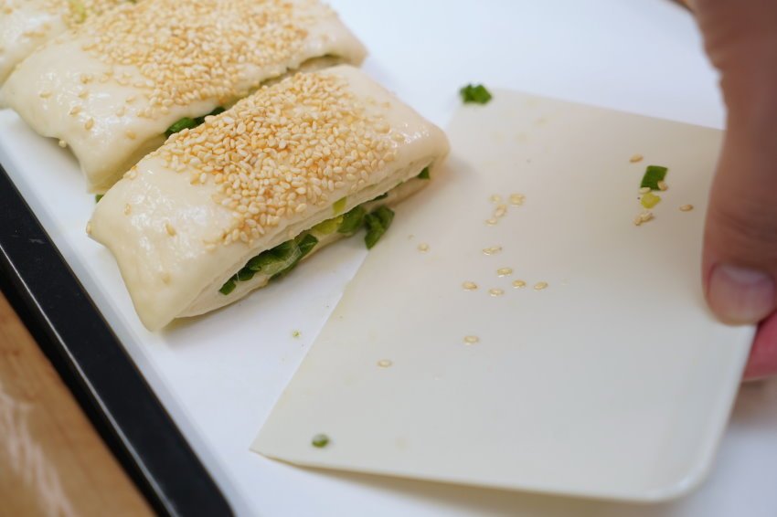 ▼裡頭總共有兩層的蔥餡,吃起來層次、味道也比較濃郁!