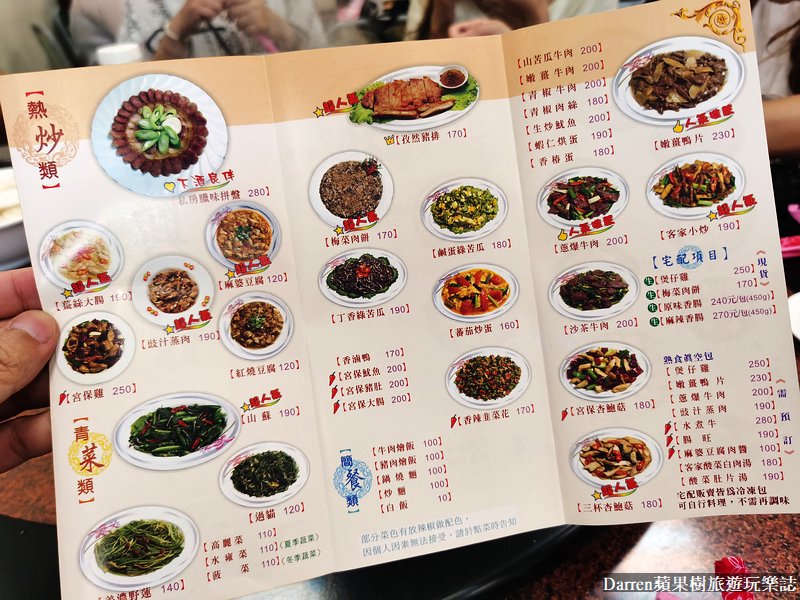▼中興小館菜單,有熱炒、青菜、煲鍋、海產、火鍋類等等,也有提供簡餐,如果需要熟食真空包就需要預定,中興小館必點有煲仔雞、海鮮獅子頭、梅菜肉餅、嫩薑鴨片、客家小炒、三杯杏鮑菇、臘味拼盤等