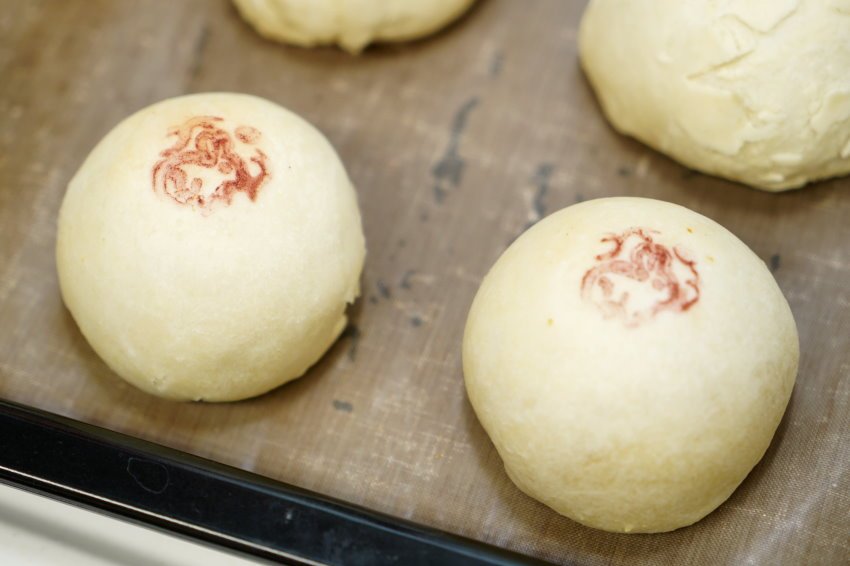 ▼剛出爐的綠豆椪看起來有模有樣,蓋上紅章後賣相更好了~
