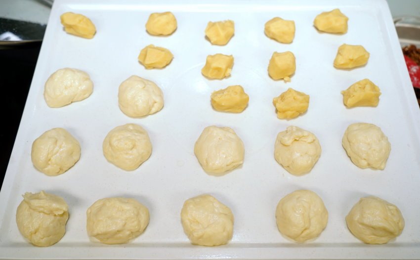 ▼將油皮、油酥分好12等份(油皮每顆23g、油酥每顆15g)~~
