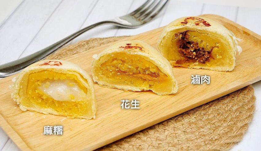 ▼最後吃的是比較傳統的滷肉餡,鹹甜甘醇的香氣又帶點油蔥酥、芝麻香氣,加上細膩微甜的綠豆餡整個很可以~~經典款果然耐吃啊!